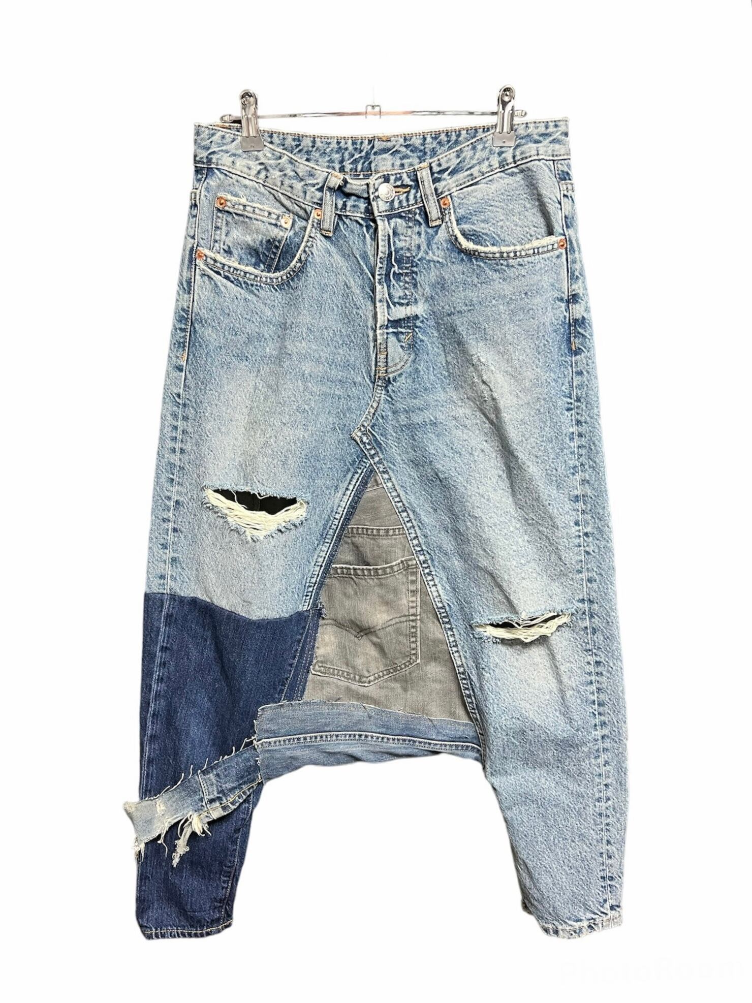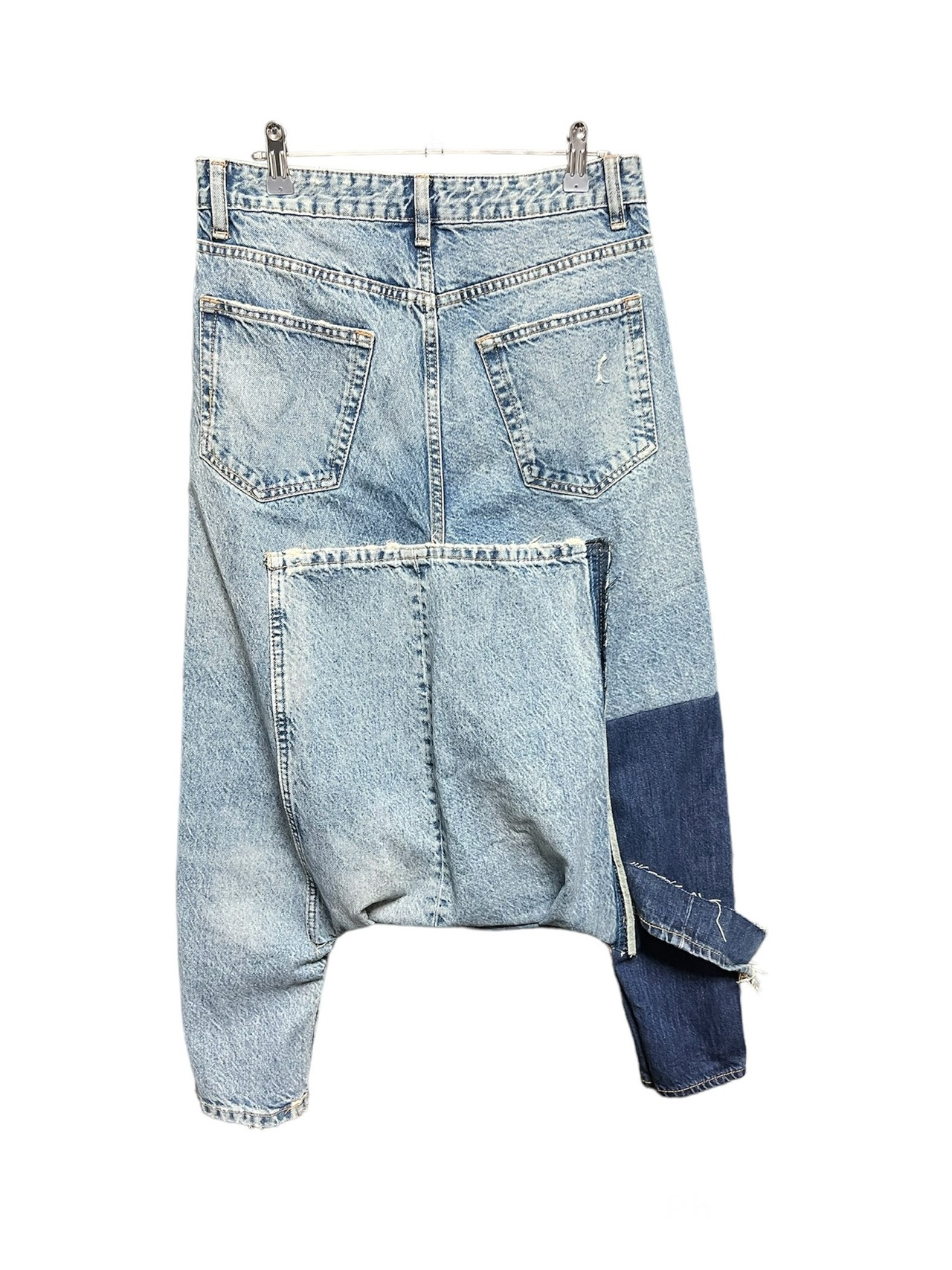古着のジーンズを解体し、再構築した一点もののアイテムです。