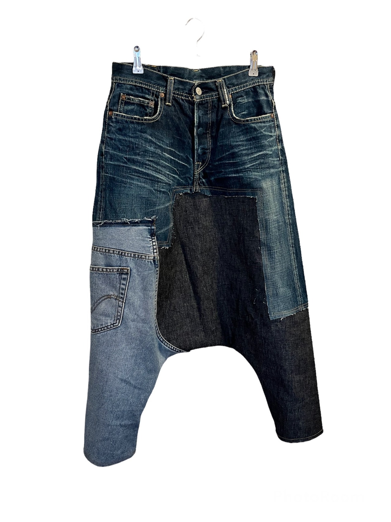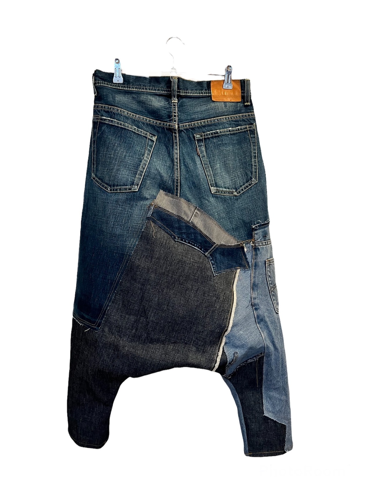 古着のジーンズを解体し、再構築した一点もののアイテムです。