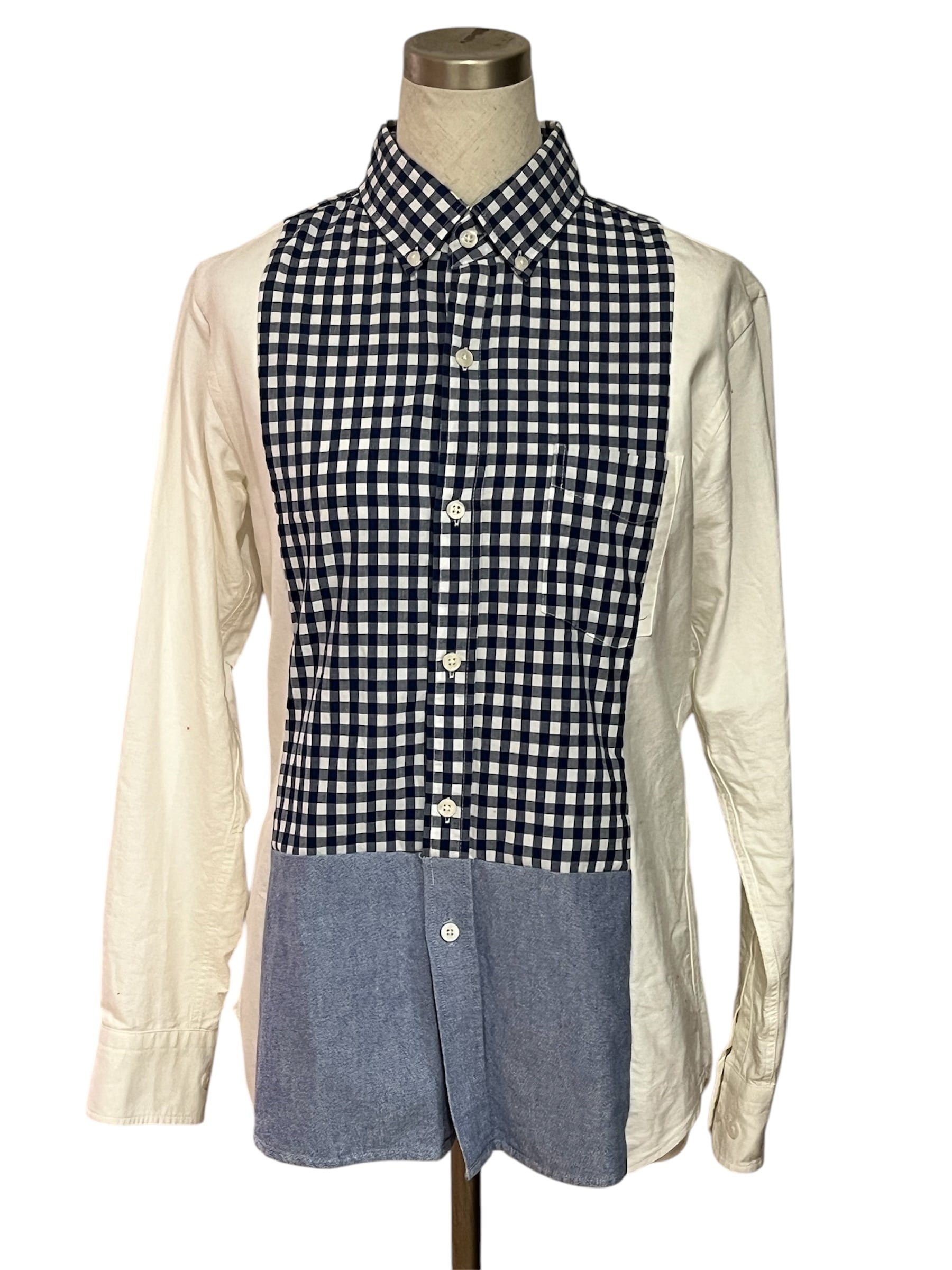 古着のシャツを解体し、再構築した一点もののアイテムです。